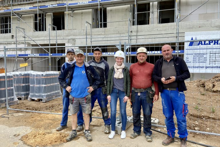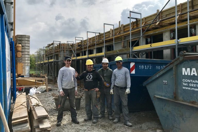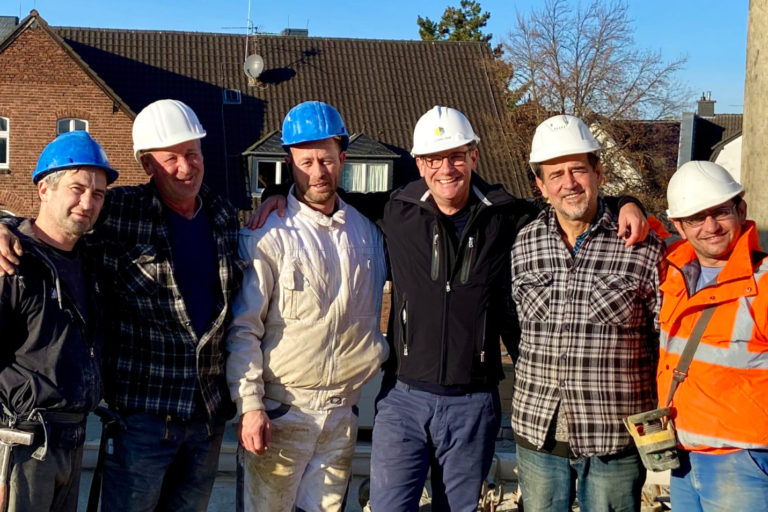 Am 19.12.19 bedankte sich Herr Achenbach mit ein paar kleinen Präsenten beim Rohbau- Team des Neubauvorhabens „Kita und Wohnungen Am Hahnacker“ in Erftstadt-Liblar.