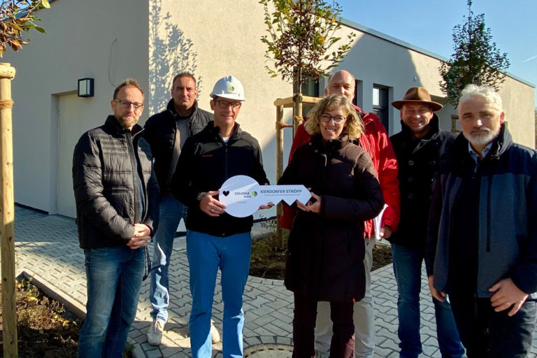 Der symbolische Schlüssel konnte von Colonia Kids Geschäftsführer Oliver Achenbach an die zukünftige Kitaleitung der Kita „Kierdorfer Ströpp“ übergeben werden.