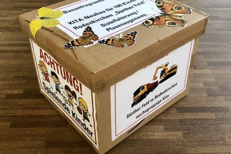 Am Freitag den 13.März 2020 überreichte Herr Achenbach der Stadt Köln den Bauantrag für die Kita am Distelfalterweg in 50999 Köln-Rodenkirchen.