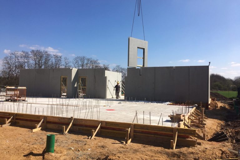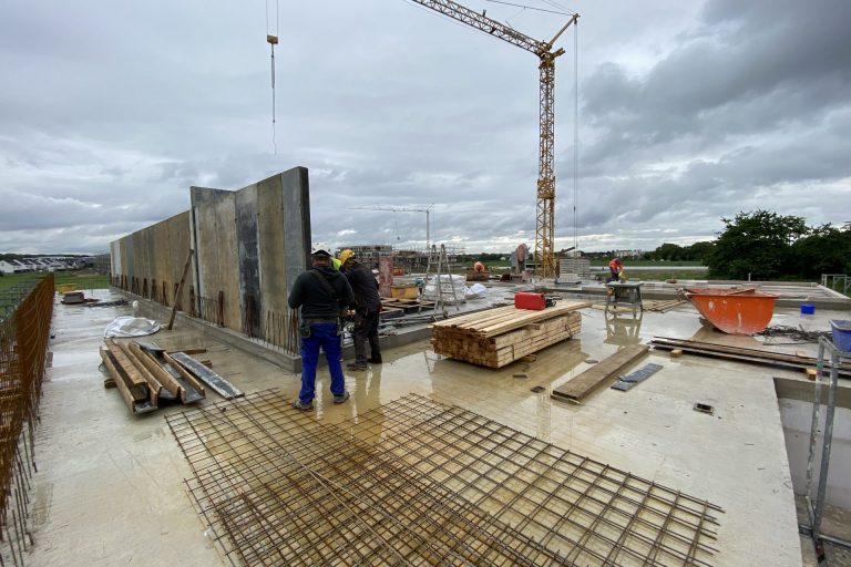 Die Mauerarbeiten im Erdgeschoss sind nun abgeschlossen und die Kindertagesstätte hat ihre erste Decke bekommen.