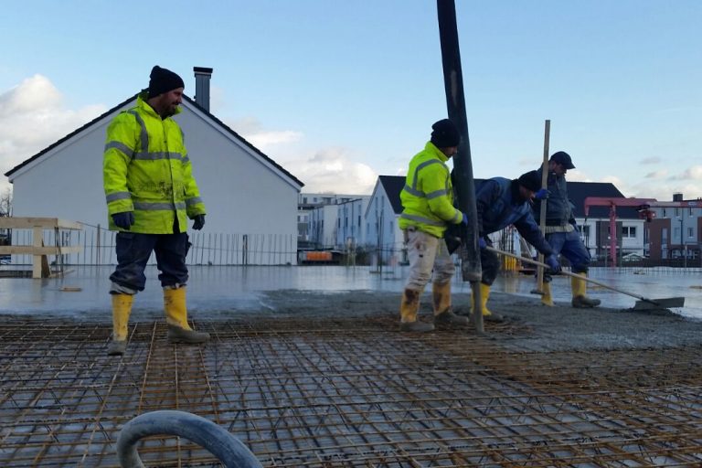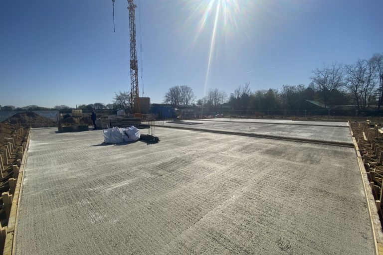 Auf den zwei Baustellen geht es weiter schnell voran. Am heutigen Tag wurde die Decke des Erdgeschosses der künftigen Porzer Kita betoniert.