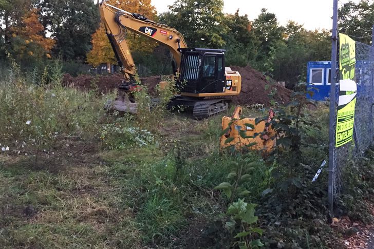 Heute rollte der erste Bagger in der Andre-Citroen-Straße 35 in Porz an. Die Baustelle wurde eingerichtet.