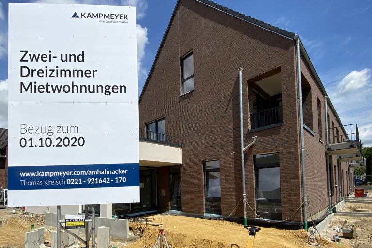 Seit einigen Tagen weist das aufgestellte Vermietungsschild der Firma Kampmeyer interessierten Mietern den direkten Weg zu Herrn Kreisch.